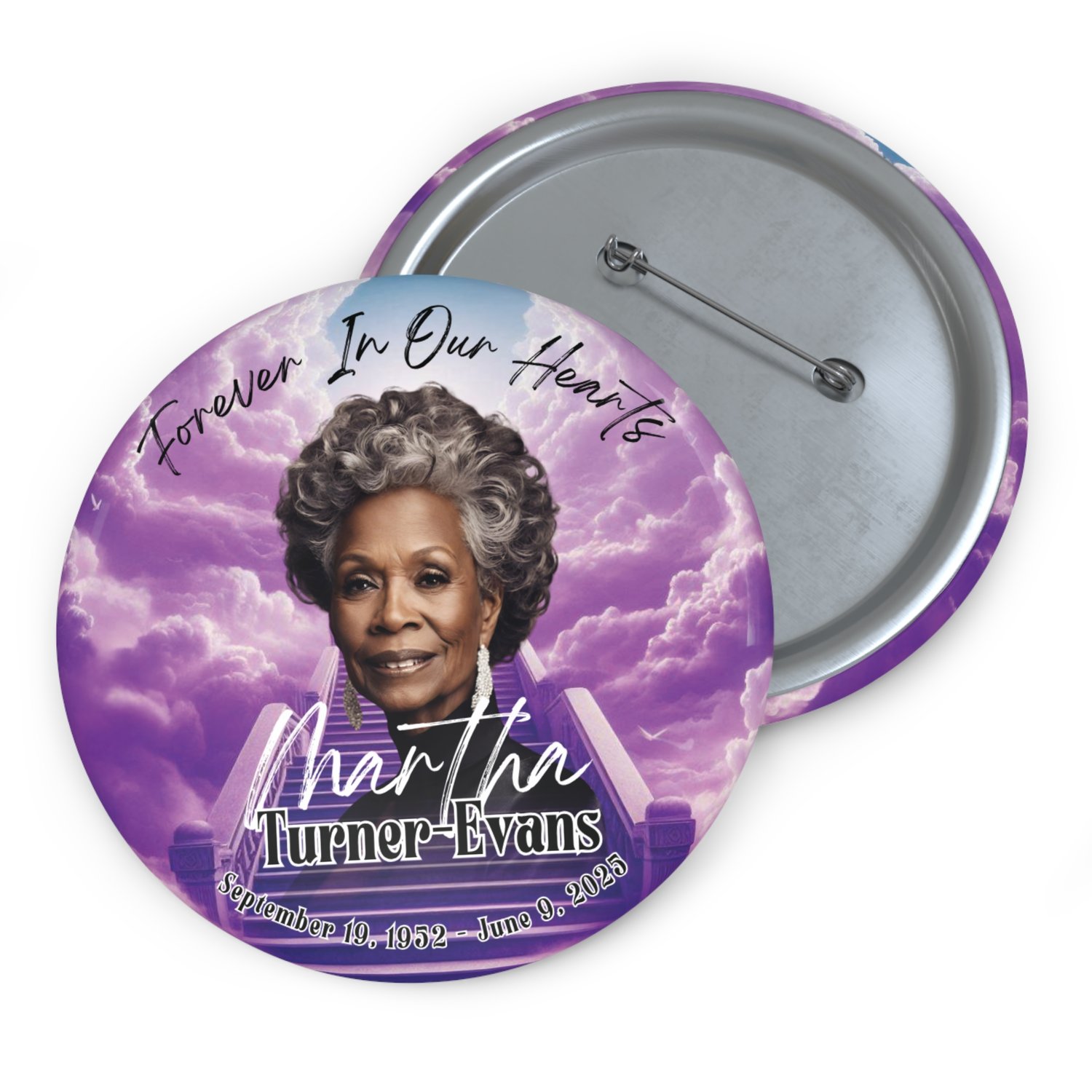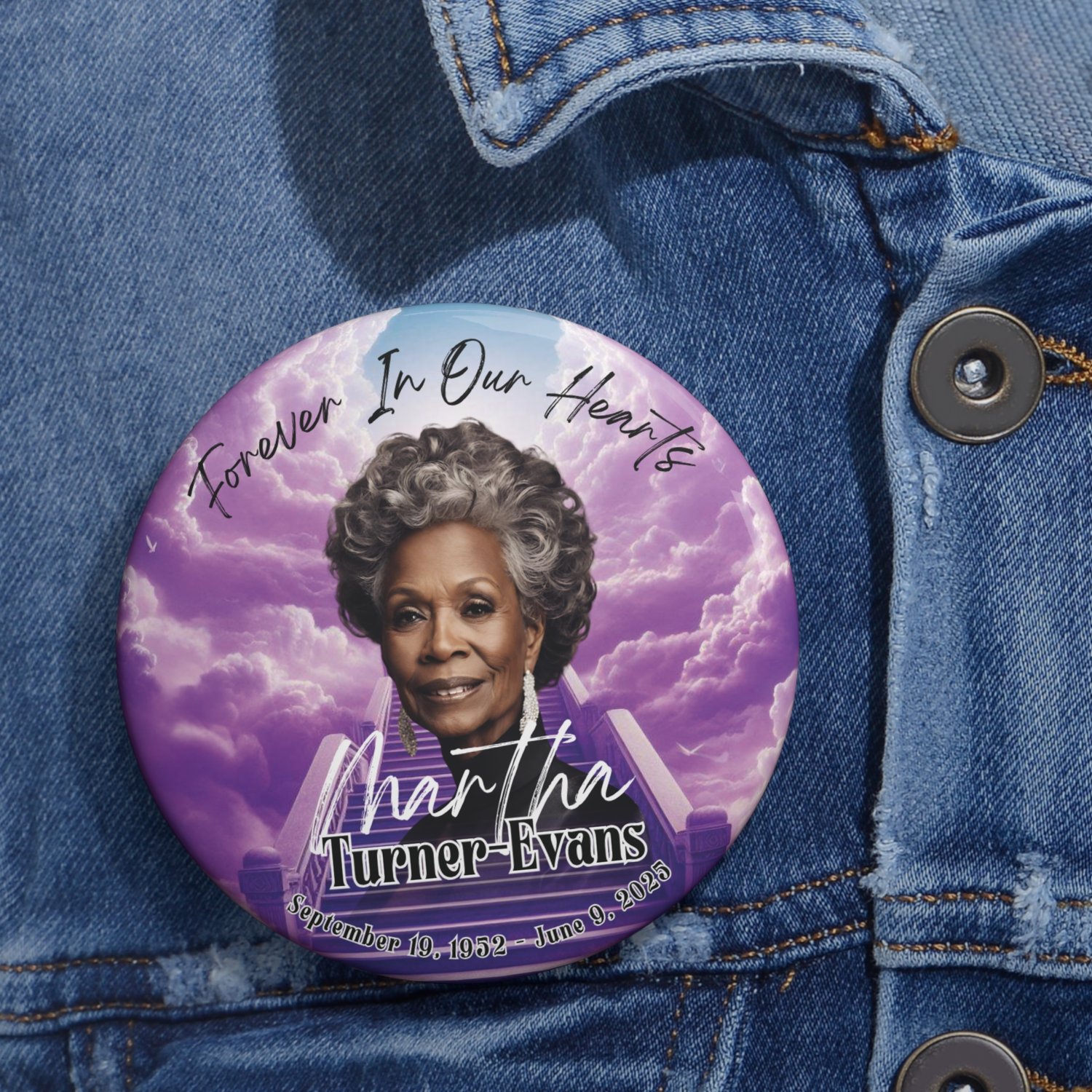 Celebrate a life beautifully lived with the Purple Stairway to Heaven memorial button template. This 3-inch round design features a soft, spiritual purple palette — symbolizing peace, dignity, and remembrance — making it a timeless keepsake for funerals, memorial services, and celebrations of life.