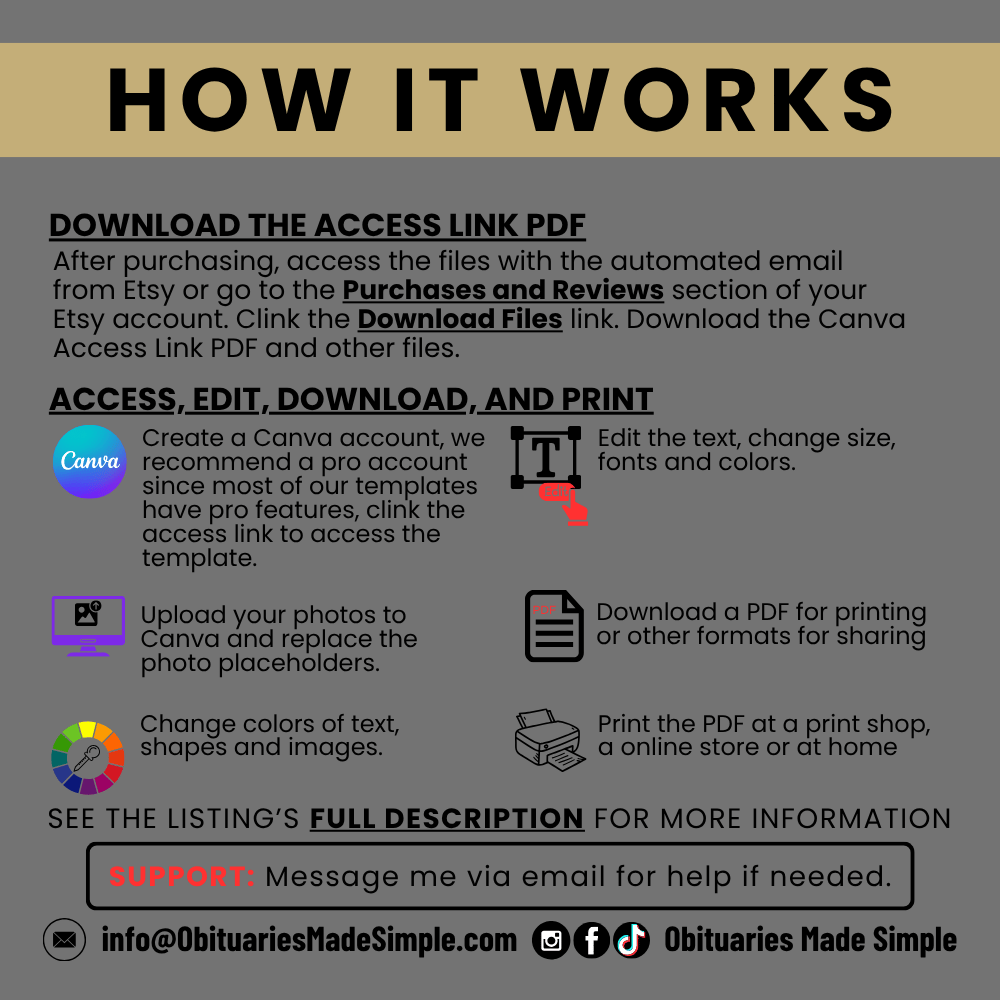 Whether you're creating a tribute for a loved one or designing for a client, this easy-to-edit Canva template allows you to personalize every detail with love and intention.