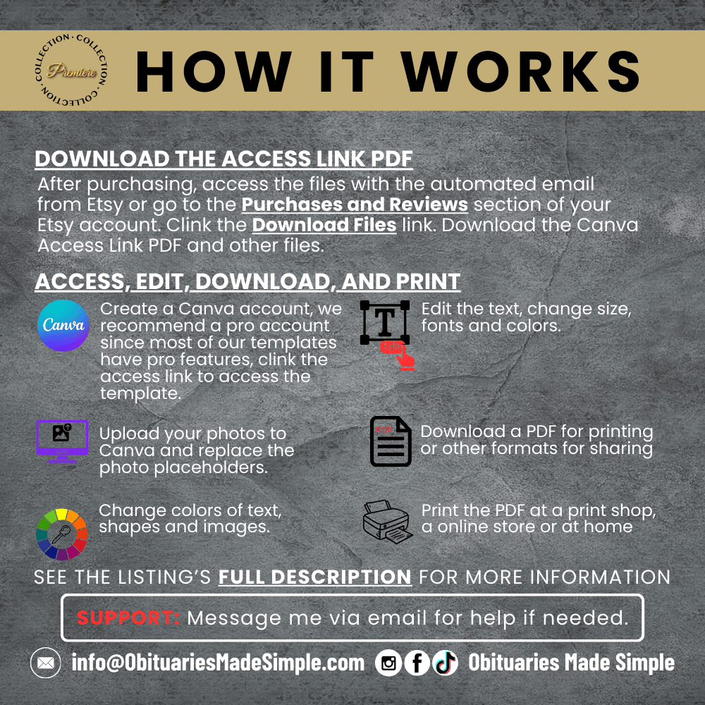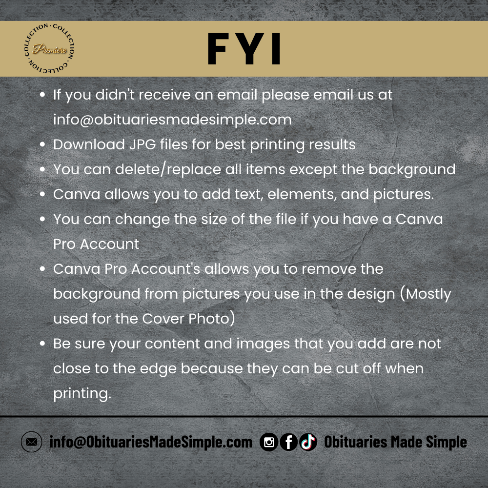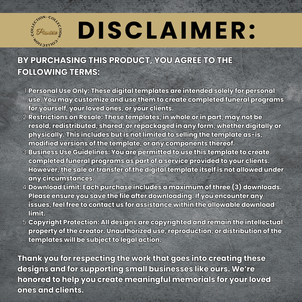 🔹 Personal Use Only – These digital templates are for personal use and creating completed funeral programs for yourself, your loved ones, or your clients.