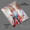 Celebrate a life beautifully with our Red Butterfly White Feathers Funeral Program Template. This delicate 8-page design features vibrant red butterflies paired with soft white feathers, symbolizing transformation, hope, and peace.