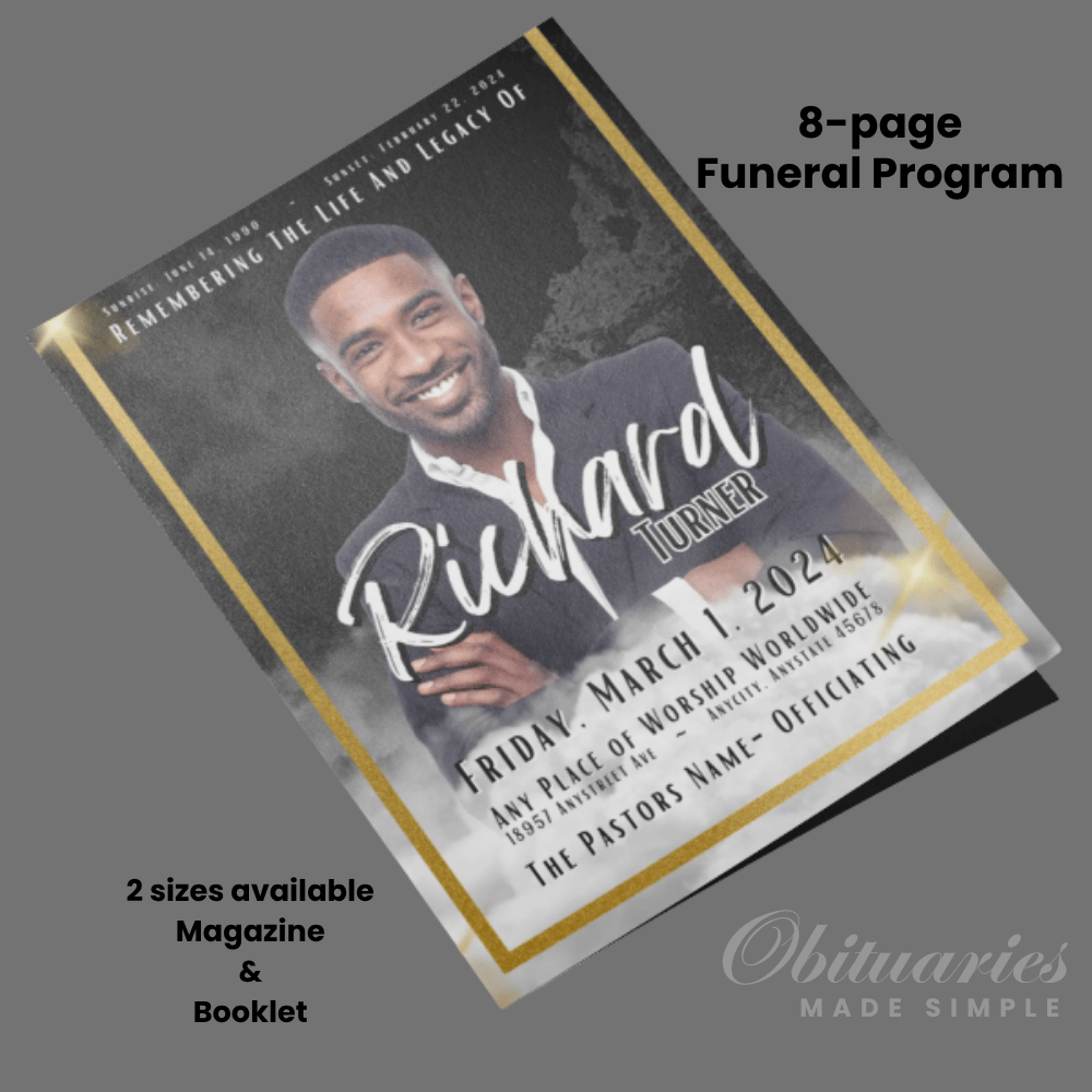 Black and Gold Clouds Funeral Program – 8-Page Canva Template