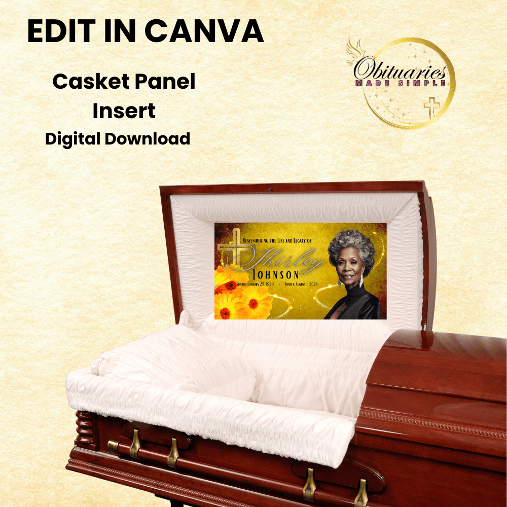 Tags: #CasketPanelInserts #DigitalDownload #CanvaPro #YellowFlowers #CrossDesign #MemorialTribute #CustomTemplate #FuneralServices #InMemory