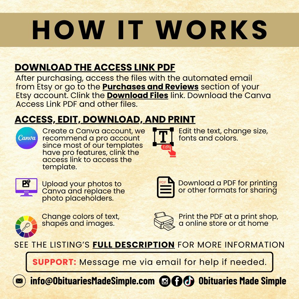 - Personal Use Only: These digital templates are intended solely for personal use. You may customize and use them to create completed funeral programs for yourself, your loved ones, or your clients.