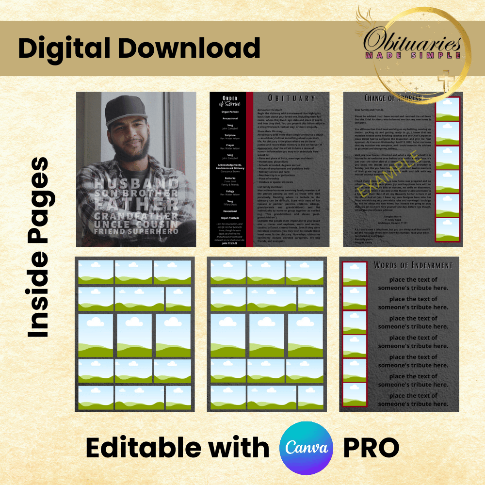 - Personal Use Only: These digital templates are intended solely for personal use. You may customize and use them to create completed funeral programs for yourself, your loved ones, or your clients.