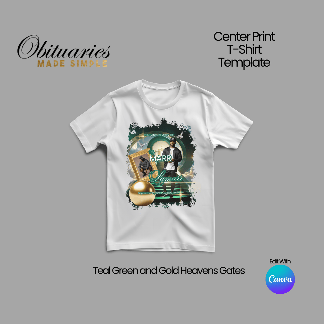 Teal Green & Gold Heaven’s Gate – Center Print Memorial T-Shirt Template