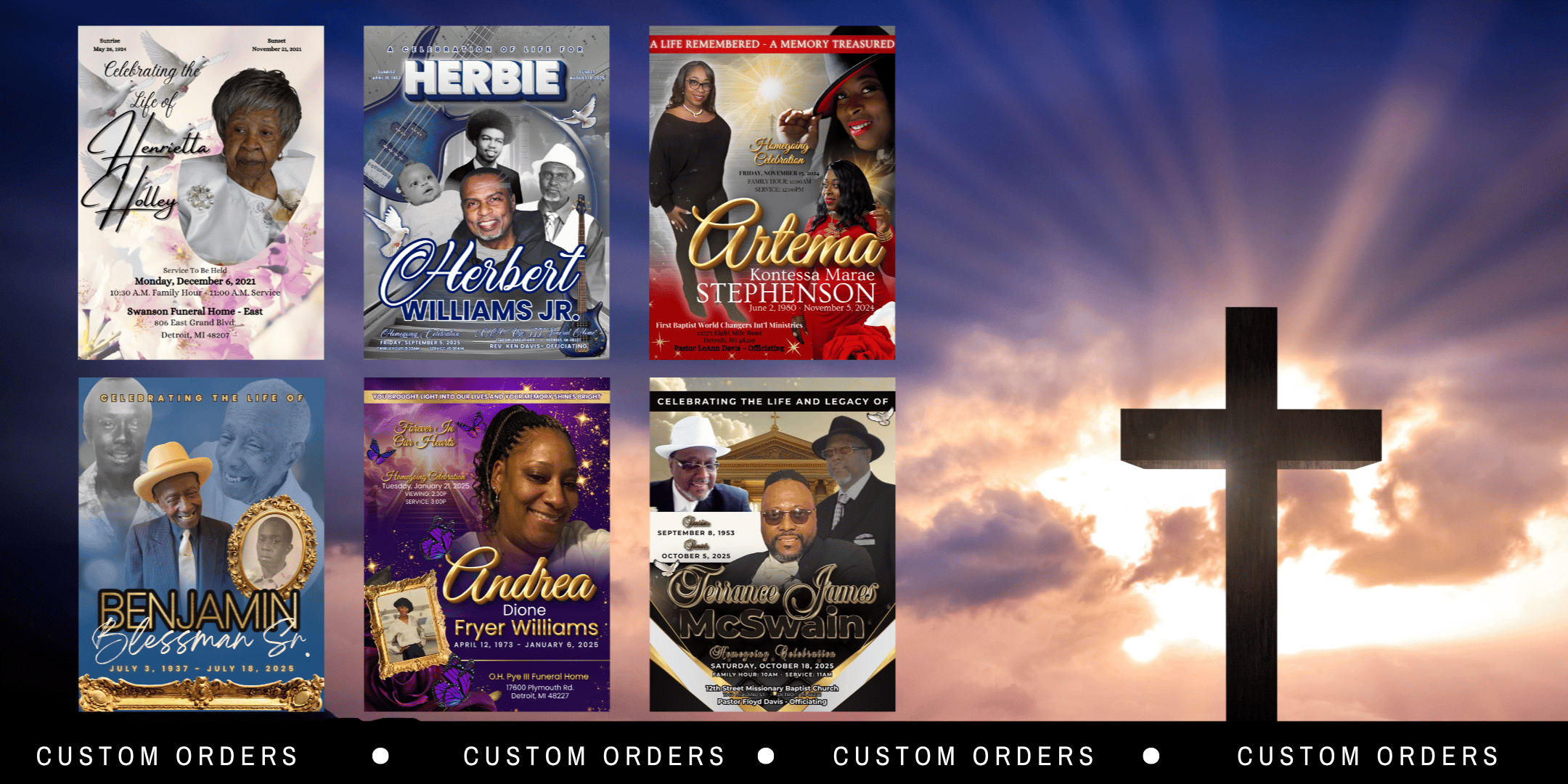At Obituaries Made Simple, we offer high-quality, personalizable digital memorial templates and custom design services to help funeral homes, small business owners, and DIY families provide dignified keepsakes at affordable prices.